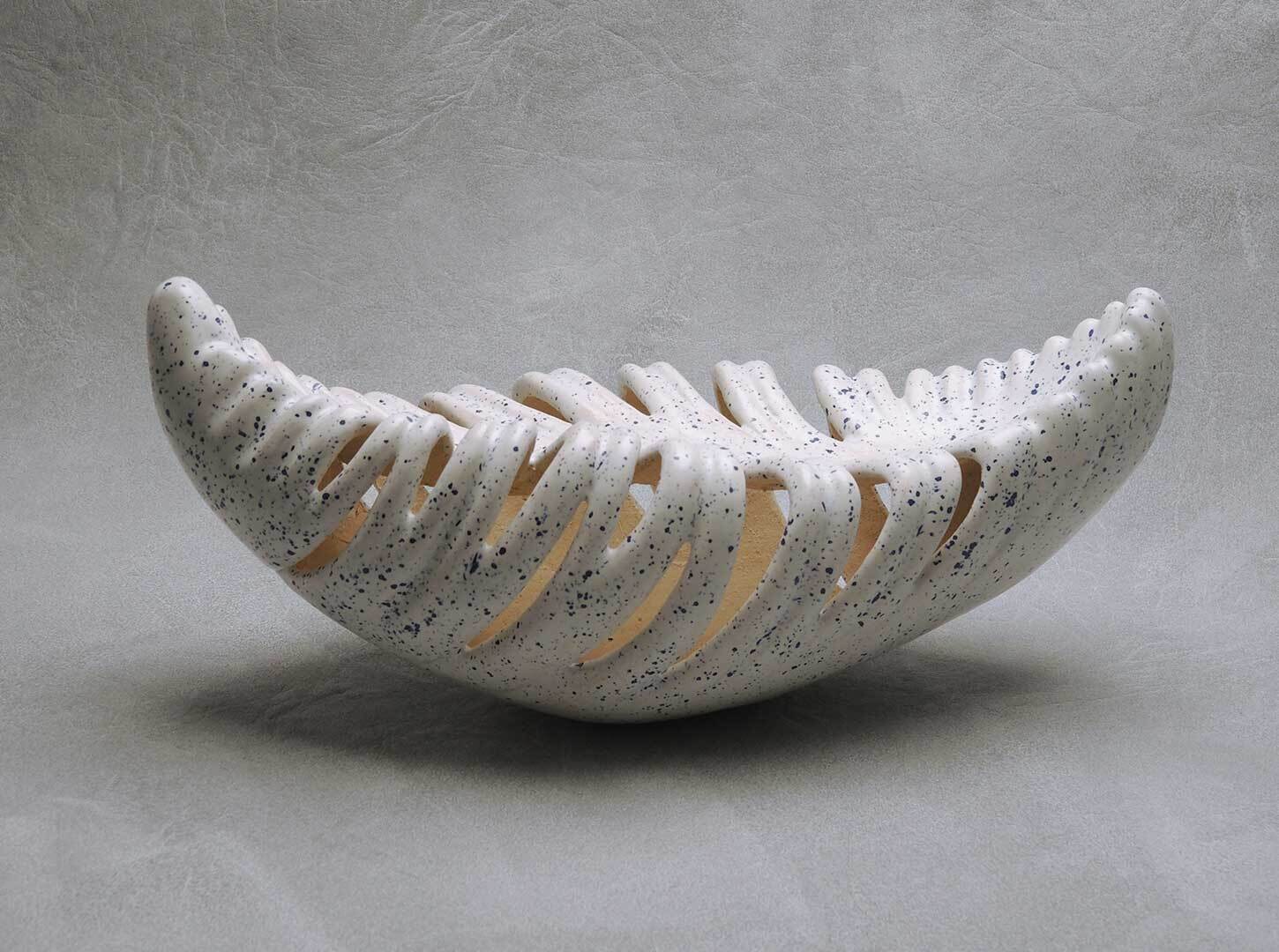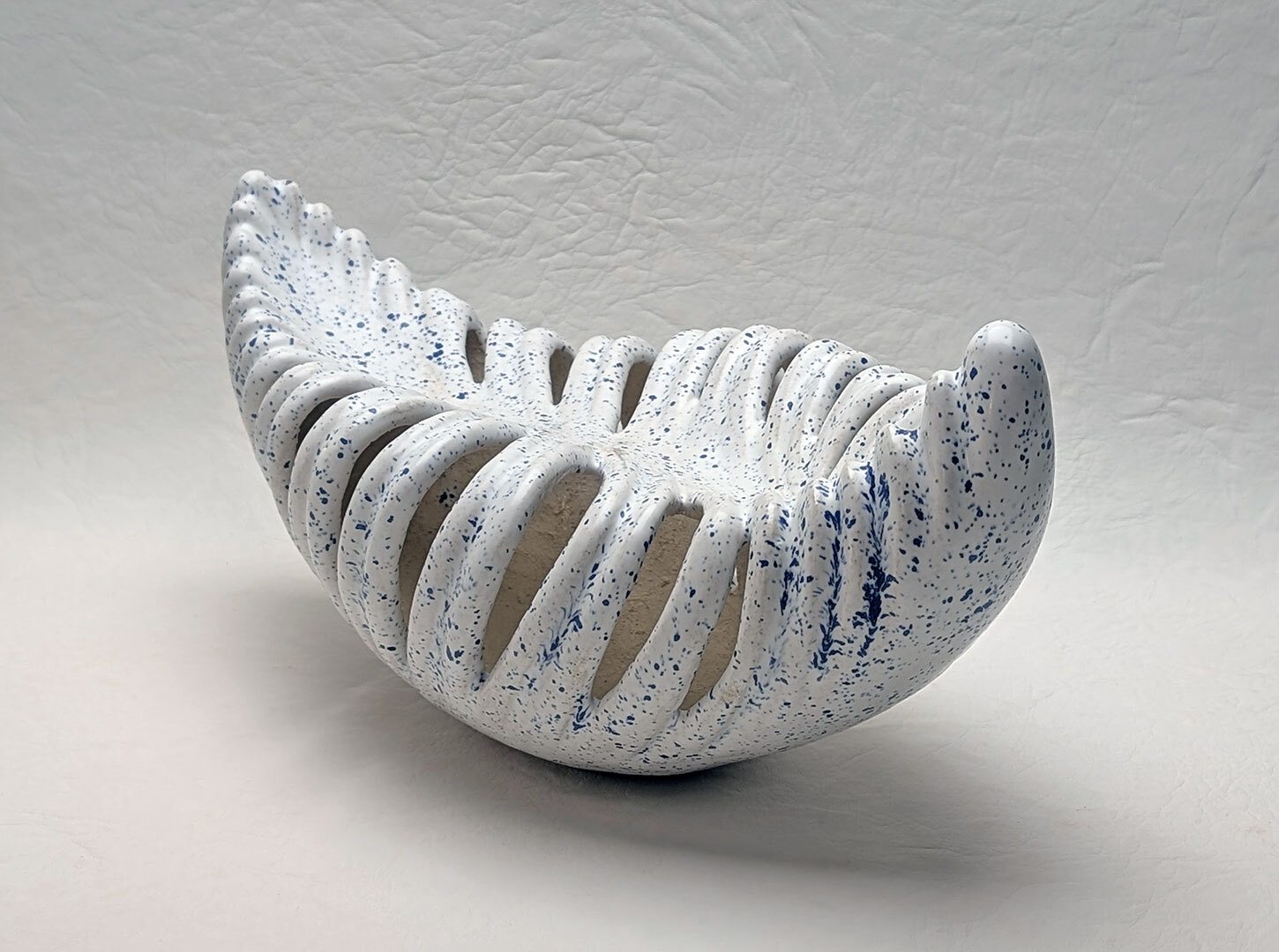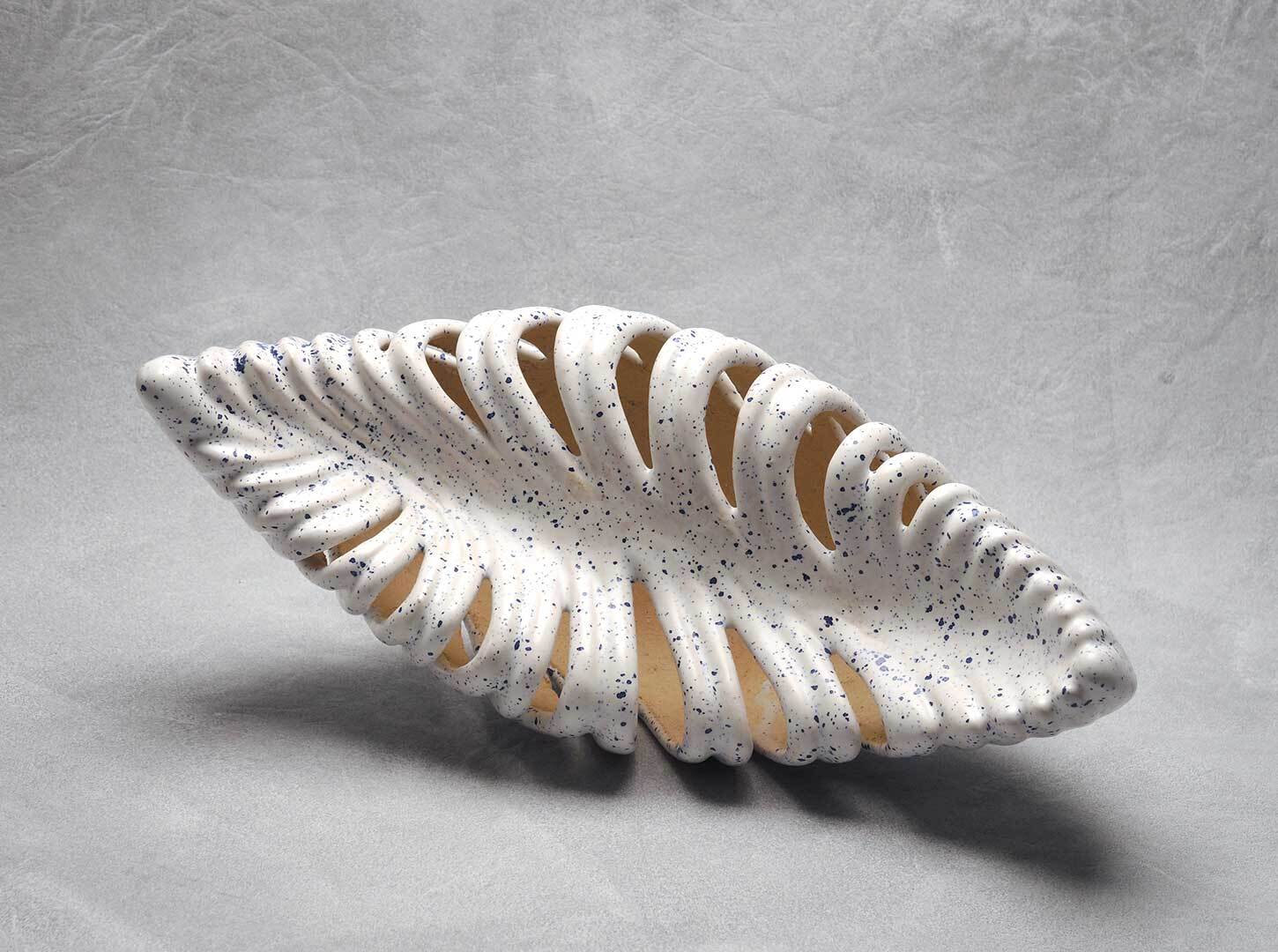 Ażurowa ozdobna forma inspirowana muszlą i szkieletem łodzi.
